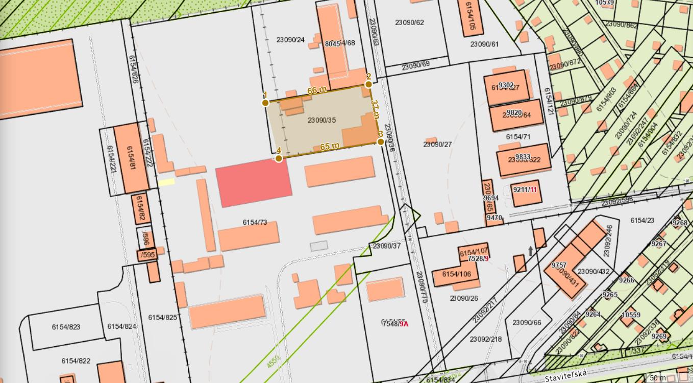 Na predaj stavebný pozemok v priemyselnej časti Bratislavy v lokalite Žabí Majer. Pozemok je vybetónovaná plocha s dvoma skladmi v rozmere 10 m x 20 m2 a 5 x 10m2 plus 5 x panelová garáž, 3 x unimobunka. Na pozemku s plochou 2452 m2 s rozmermi cca šírka 37 m a dĺžka 65 m, je kanalizácia , voda, elektrika. K pozemku prislúcha aj podiel na prístupovej ceste. Cena za m2 je 256,- € .